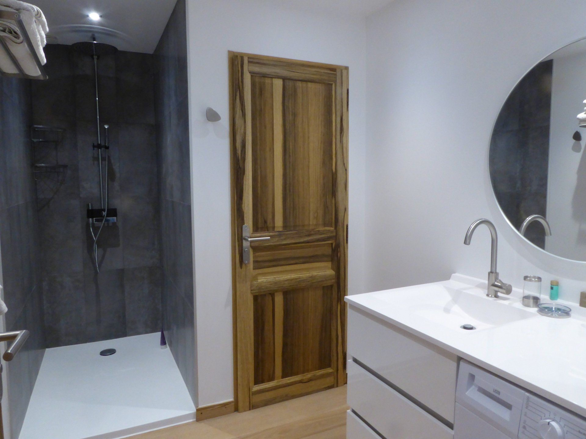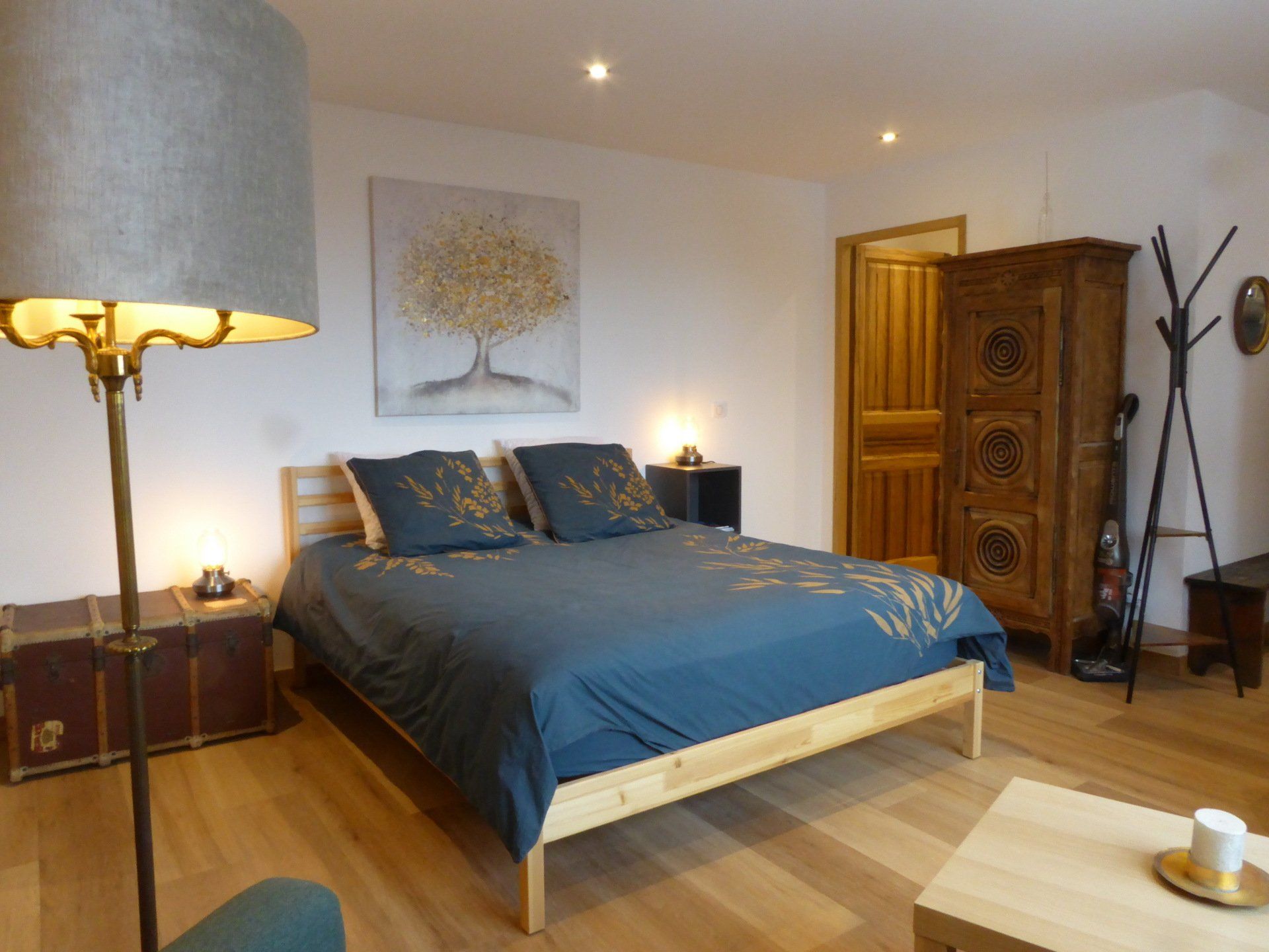 Lit double en 180, coin salon, dressing, salle d'eau avec douche et toilettes séparés, grande terrasse Sud commune aux 2 chambres.
